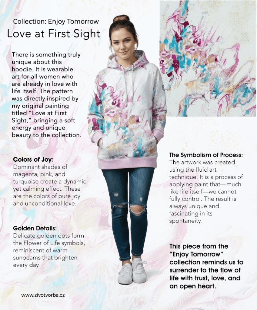 Jako malířka vnímám plátno jako prostor bez hranic. Postupem času jsem však začala cítit potřebu přenést energii svých děl i mimo rámy obrazů – do pohybu, do každodennosti, na tělo.