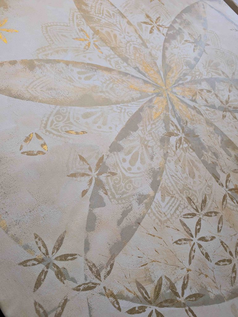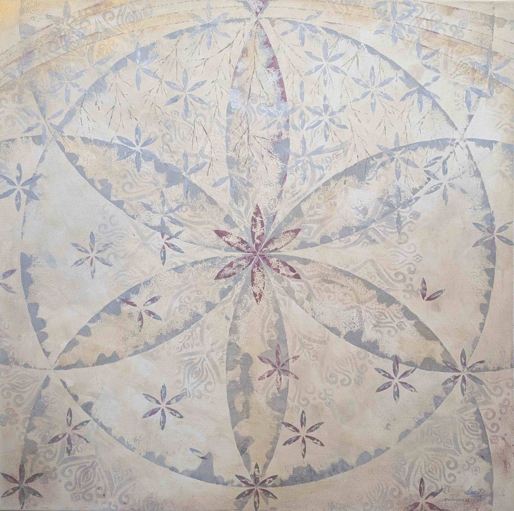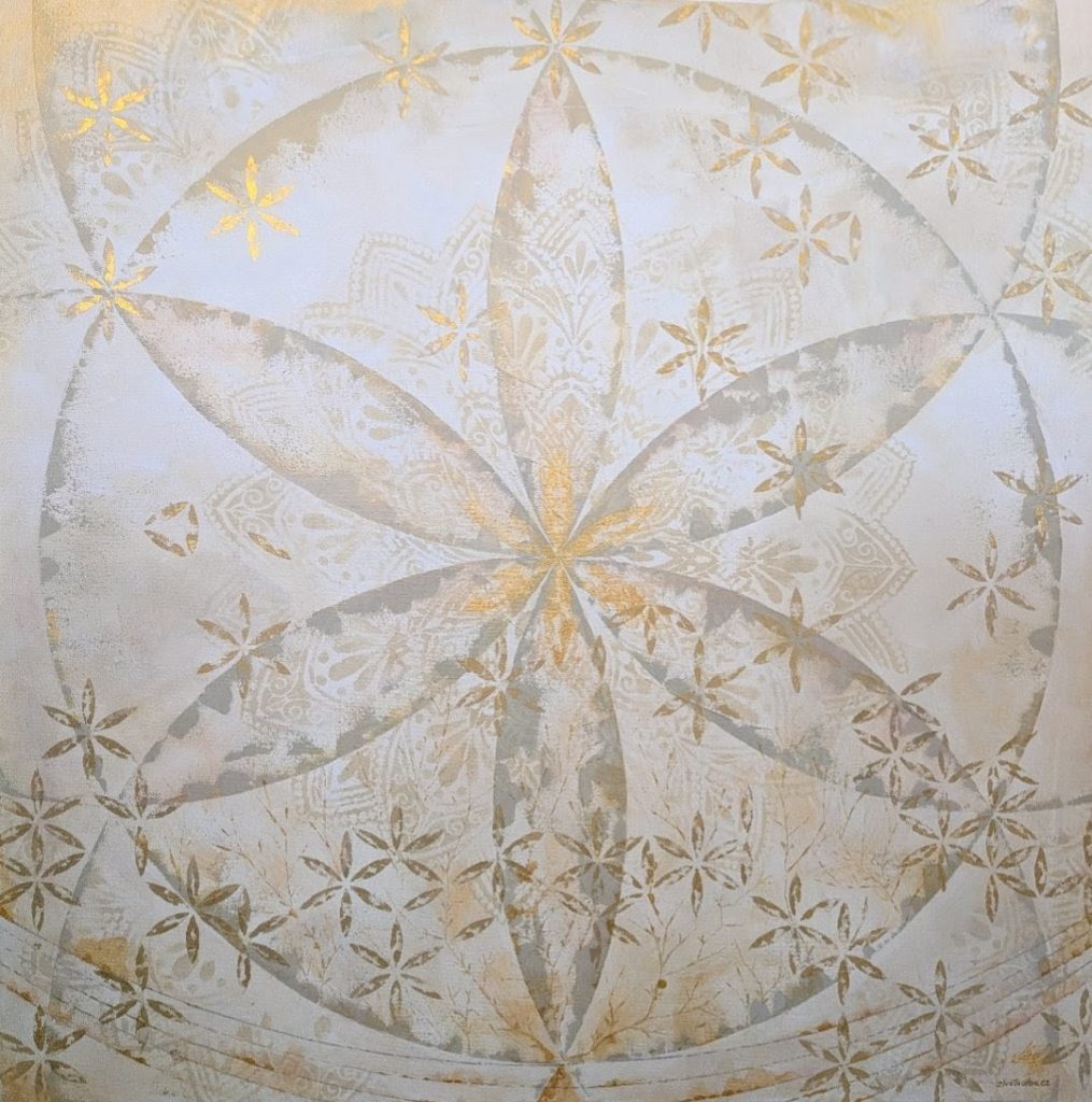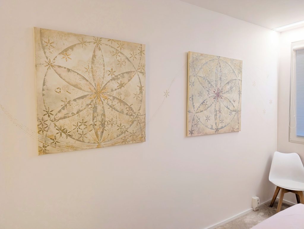 - Květ života: V centru obou obrazů se nachází tento posvátný symbol, představující základní matrici života.