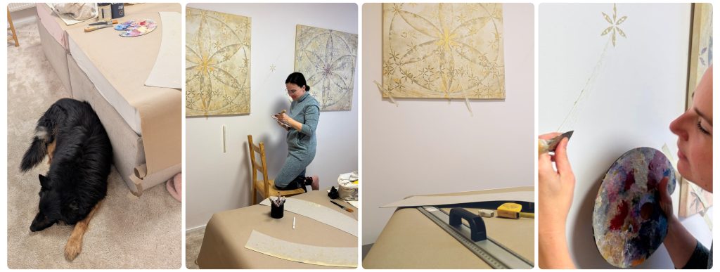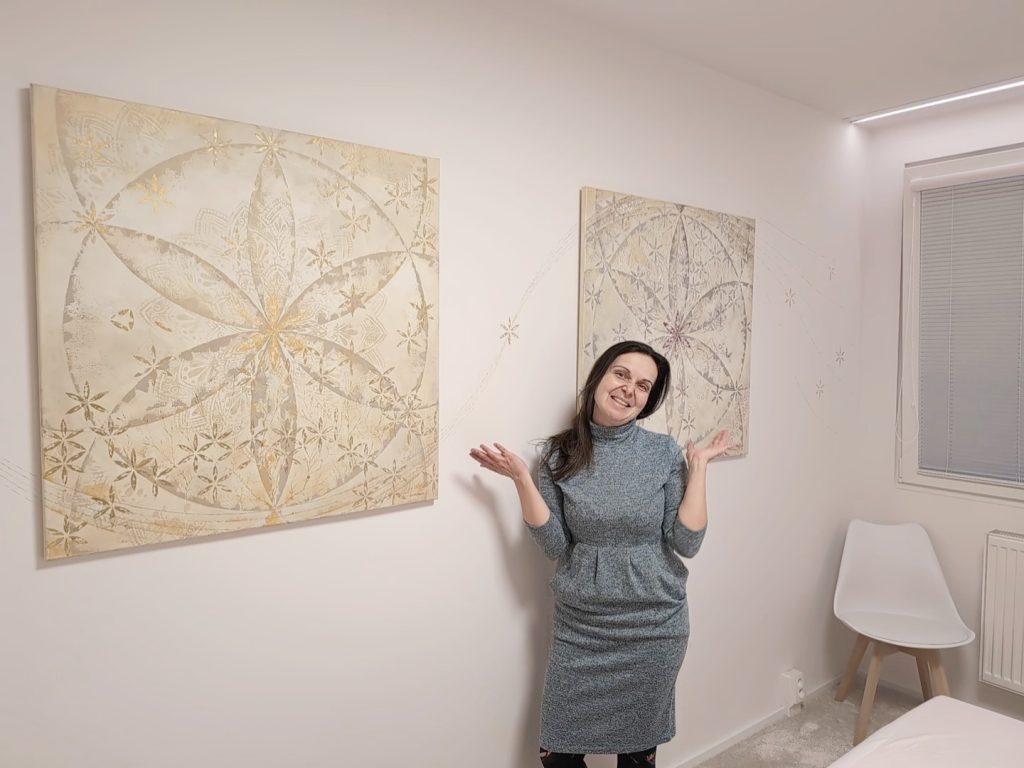 Stěžejním bodem mé práce je společné naladění na záměr. Moje schopnost převést slova do obrazů umožňuje vytvořit dílo, které není jen dekorací, ale skutečnou součástí domova, jenž jemně prostupuje celým prostorem a vytváří v něm harmonický a bezpečný přístav. Celkovým záměrem projektu bylo vytvořit klidný, léčivý a ochranný prostor, který bude své majitele každodenně podporovat.