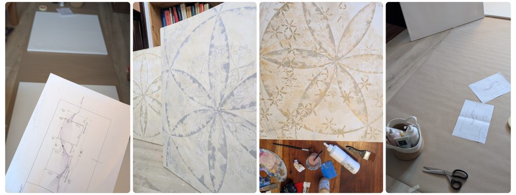 - Tvorba v ateliéru: Nejdříve namaluji hlavní obraz nebo obrazy na plátno.